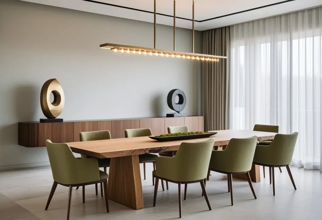 Elevate your dining experience with a contemporary home decor setup, using a statement light fixture as the focal point.