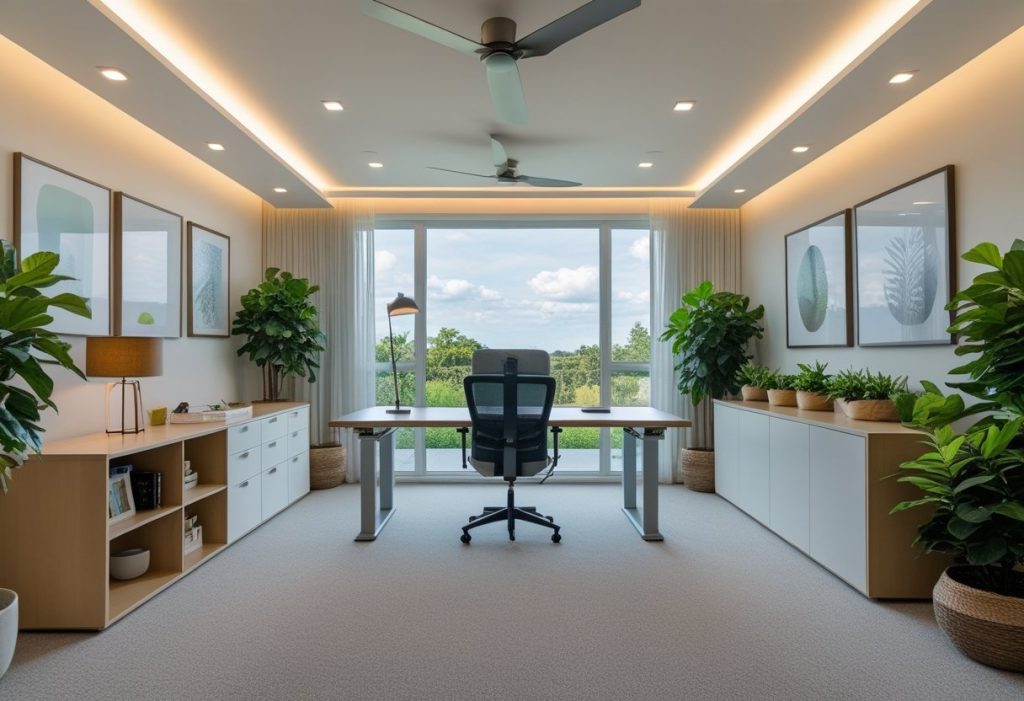 Lighting dictates the entire atmosphere of a room. Harsh, fluorescent overhead lighting can cause eye strain and fatigue. Natural light, however, is the gold standard for office decor. It regulates circadian rhythms, boosts vitamin D, and improves mood.